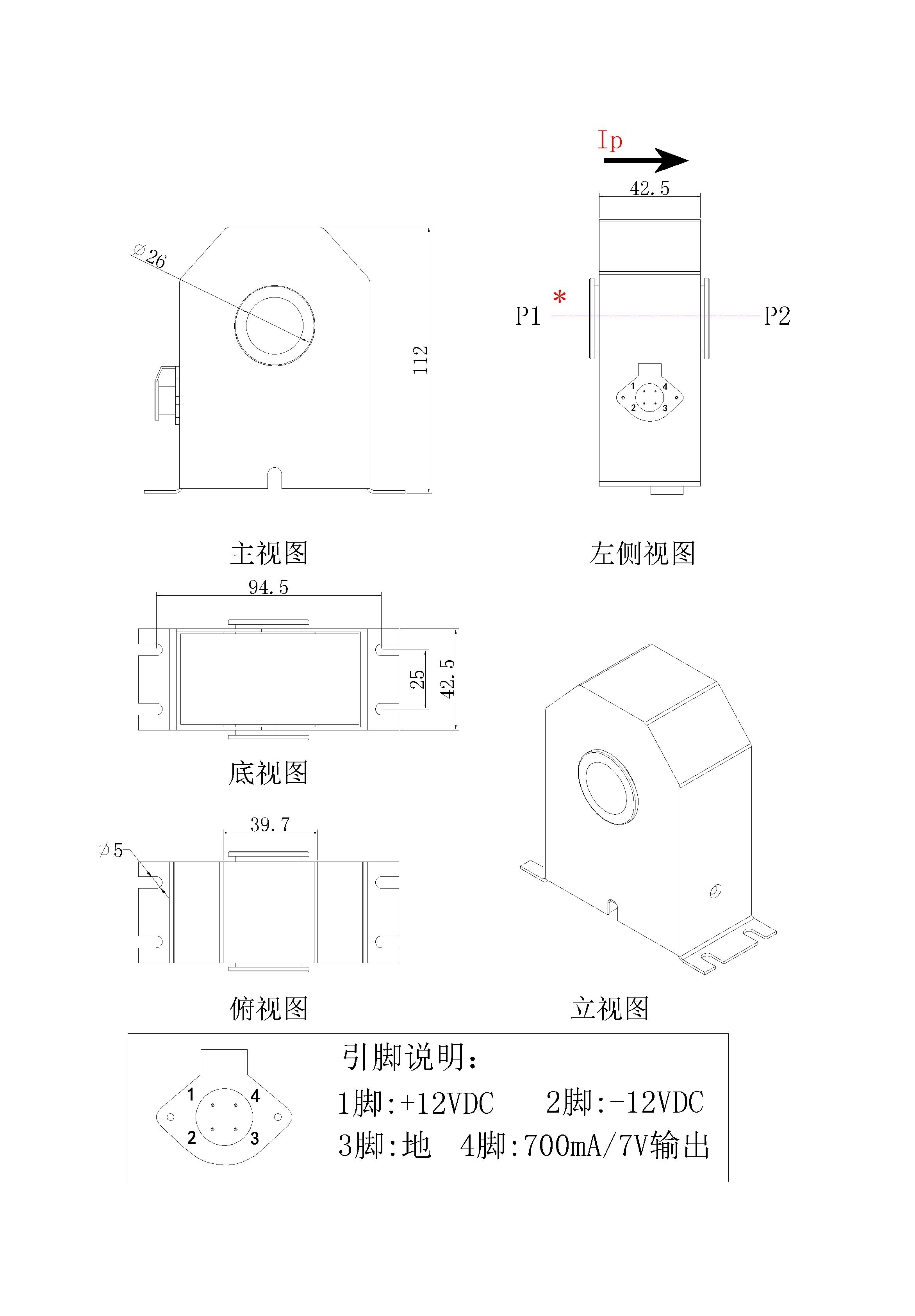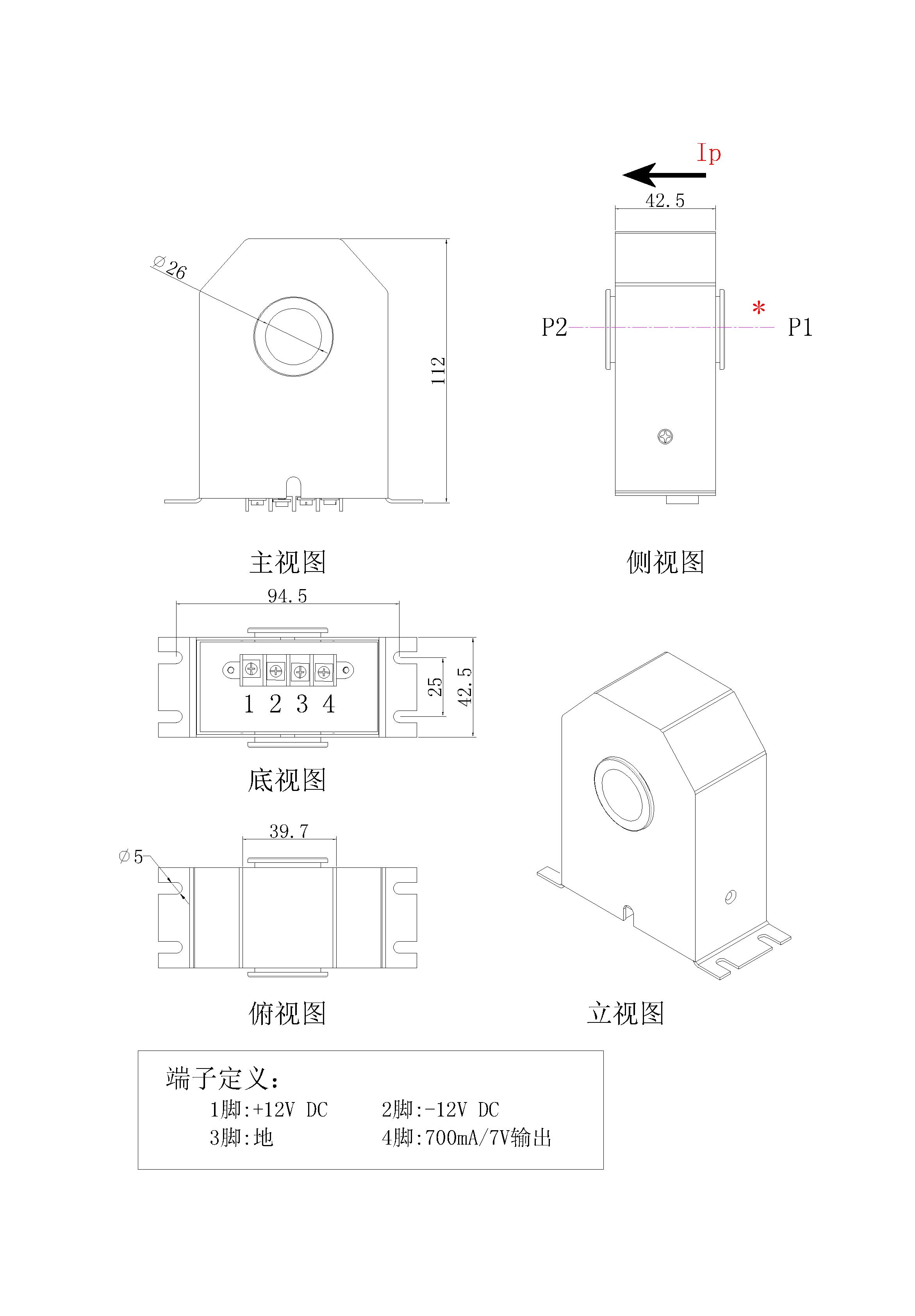 注:可按客户的要求定制(穿心孔径、外形尺寸、参数变比)